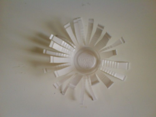 Corte toda a lateral do copo sem afetar o fundo dele e em seguida reserve.