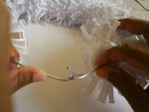 Siga até completar todo o arame com os copos. Procure colocar todos os copinhos em uma mesma direção.